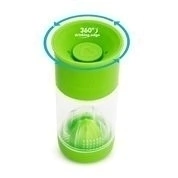 O copo infusor Miracle 360 Fruit combina um topo à prova de vazamentos e uma borda potável 360 com uma maneira natural de dar sabor à água do seu filho. Simplesmente adicione as frutas favoritas do seu filho, como morangos, laranjas ou mirtilos, na cesta de frutas, torça-a no fundo e encha o copo com água. O extrator de frutas twist-on quebra a fruta, permitindo que ela entre na água e faça uma bebida saborosa e divertida! Tchau, suco de tchau! Olá, água saudável!