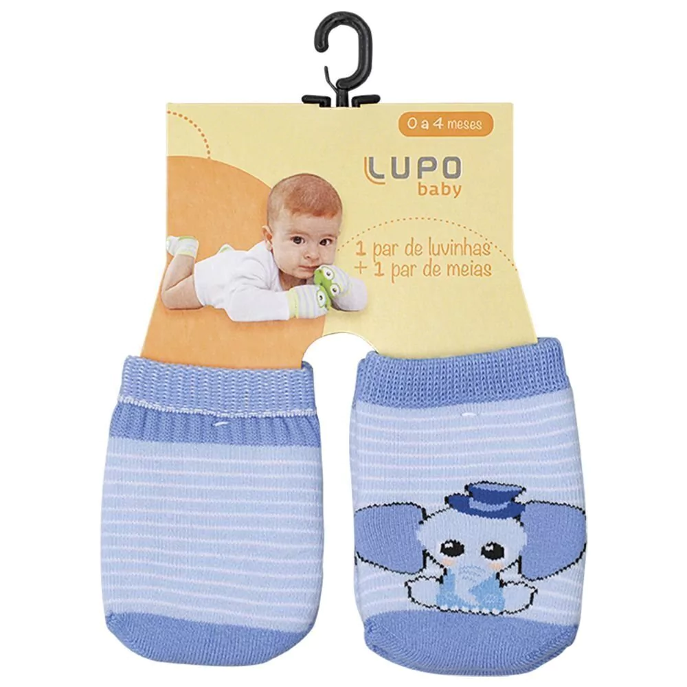KIT 01 PAR DE MEIAS + 01 PAR DE LUVINHAS elefantinho azul rn - LUPO